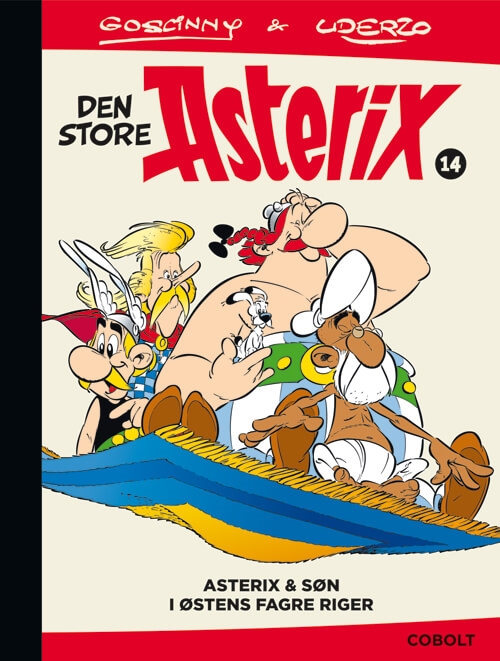 Den store Asterix 14 indeholder de to klassiske historier Asterix & søn og Asterix i Østens fagre riger samt et omfattende og rigt illustreret ekstramateriale på 60 sider om, hvordan Albert Uderzo skabte albummene, sjove detaljer fra serien, persongalleriet, livet i Romerriget og meget mere.
